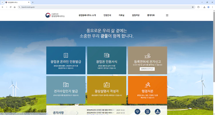 광업등록사무소 홈페이지 (https://branch.motir.go.kr)
